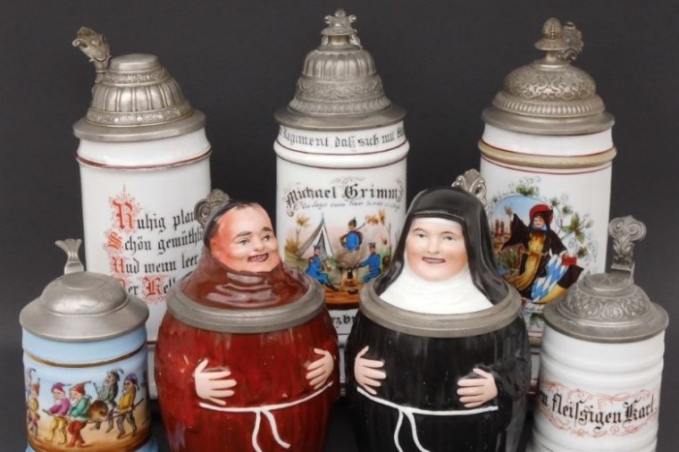 Bodenbilder in Bierkrügen der Amberger Porzellanfabrik Eduard Kick