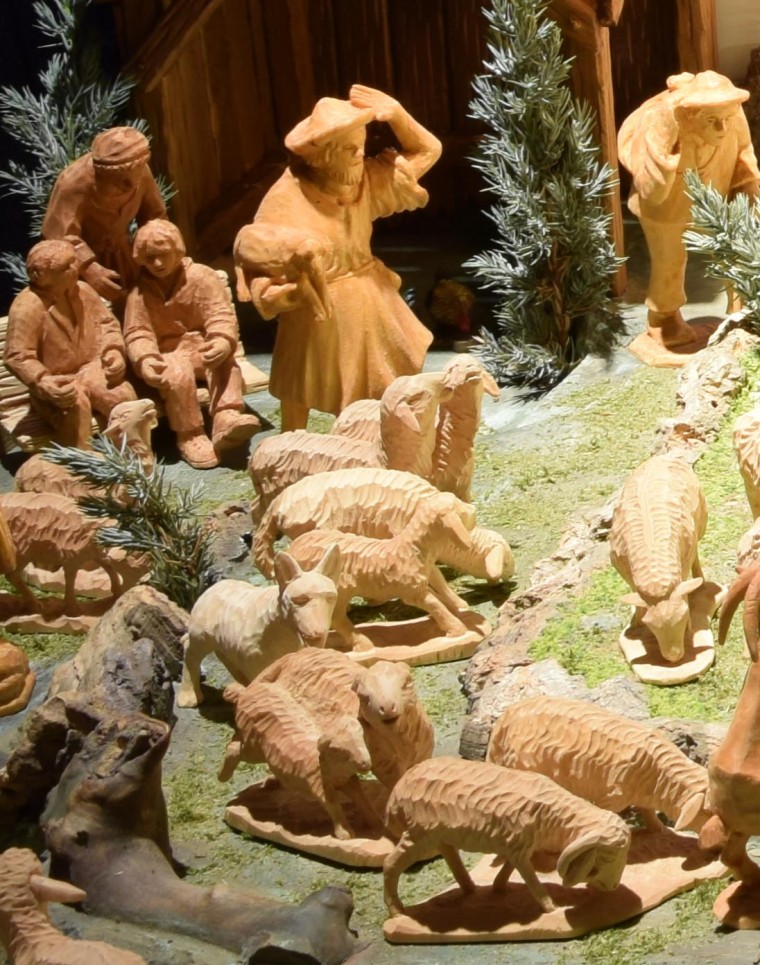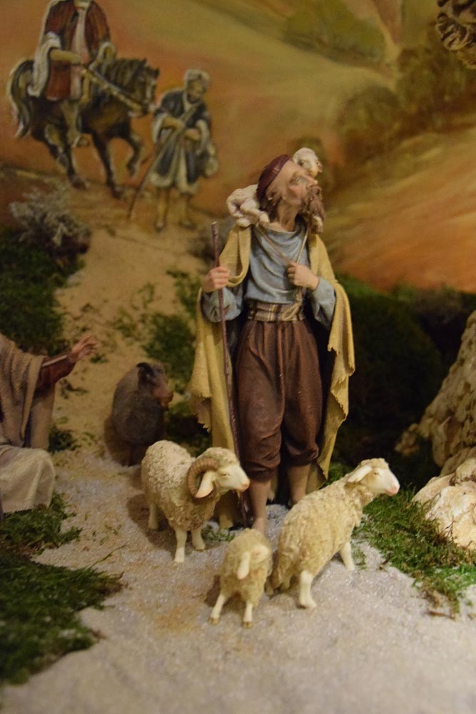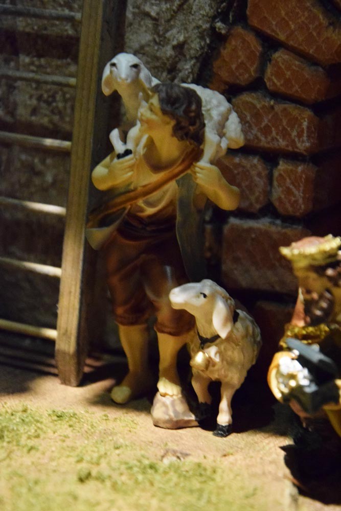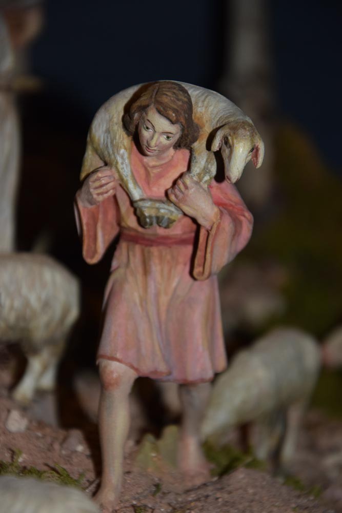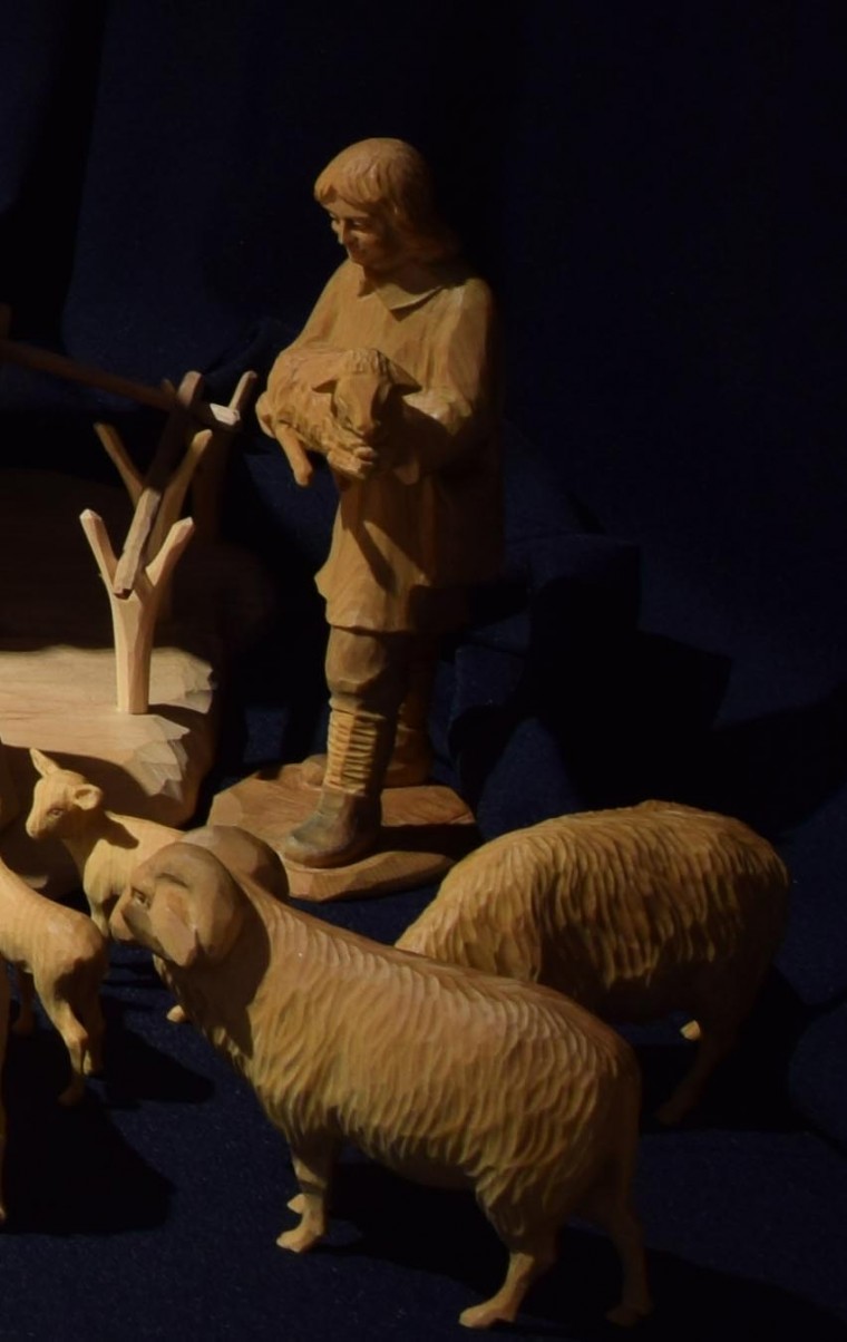 Die grundlegende Faszination von Krippenbauern ist die Darstellung des Lebens und Leidens Jesu. Es bestehen diesbezüglich einige Traditionen, doch kommen ebenso vollkommen individuelle Ideen und Vorstellungen zum Ausdruck. Trotz dieser Mannigfaltigkeit treten immer wieder Figuren mit besonderer Bedeutung bzw. Funktion auf. Eine davon soll heute in den Mittelpunkt gestellt werden – sie kommt nämlich in einer Vielzahl der in der Ausstellung „95+1 Jahre“ Krippenfreunde Amberg e. V. gezeigten Krippen vor – gemeint ist „Der gute Hirte“.