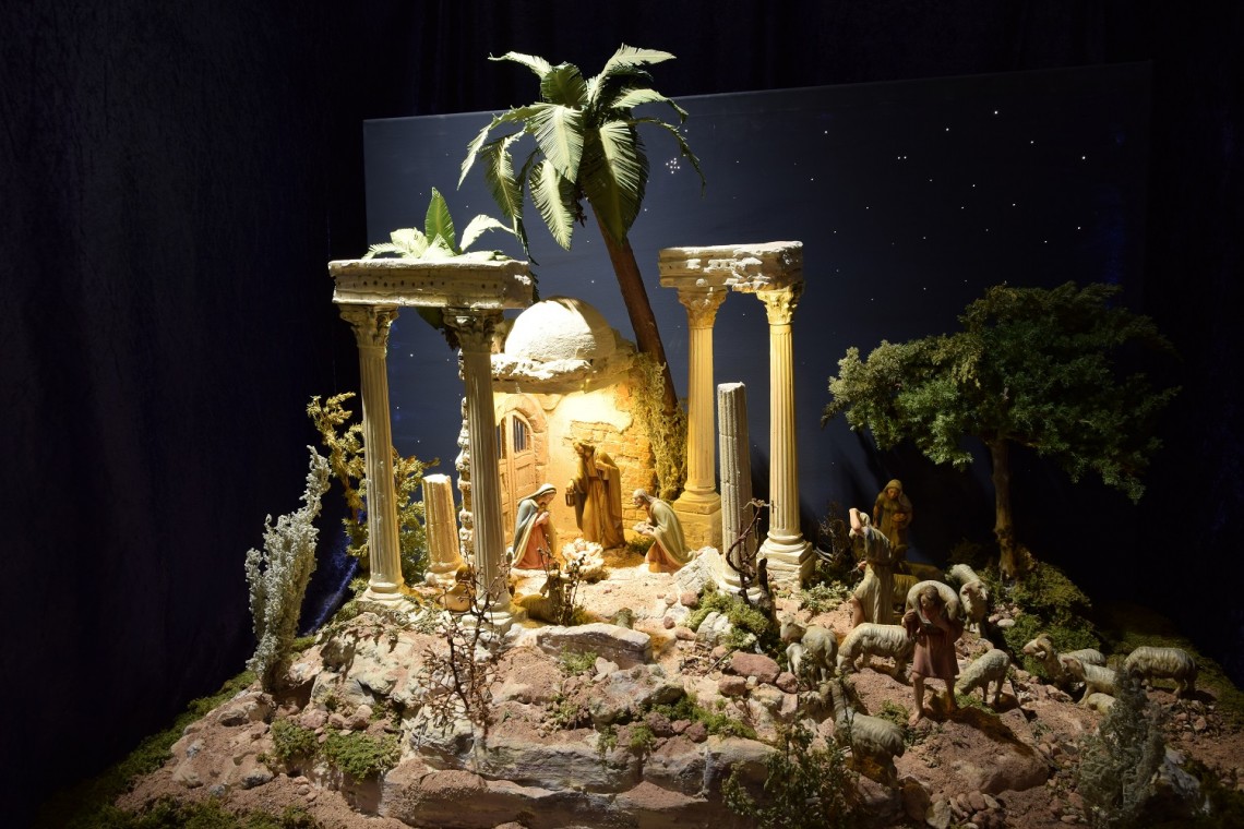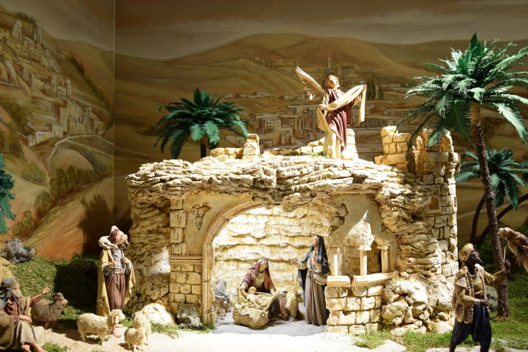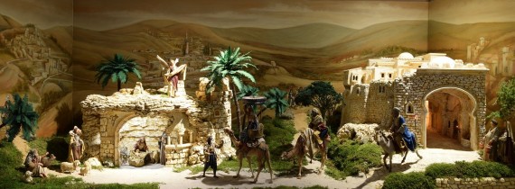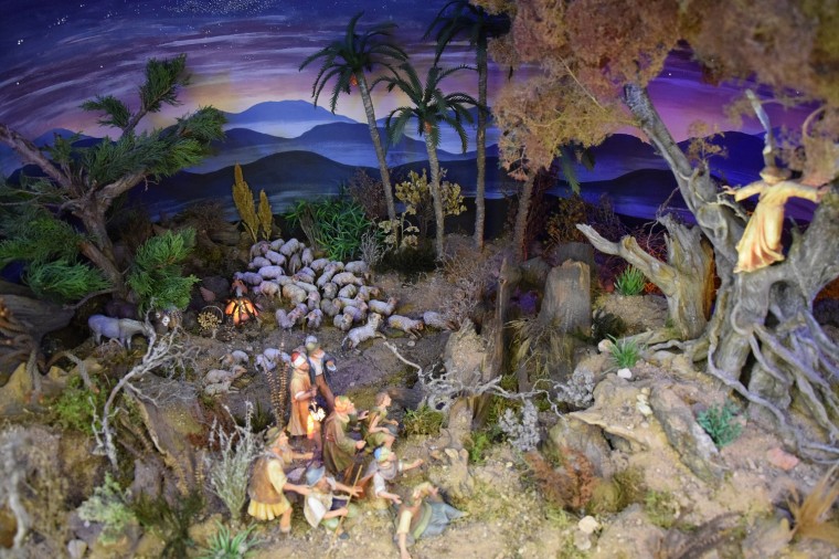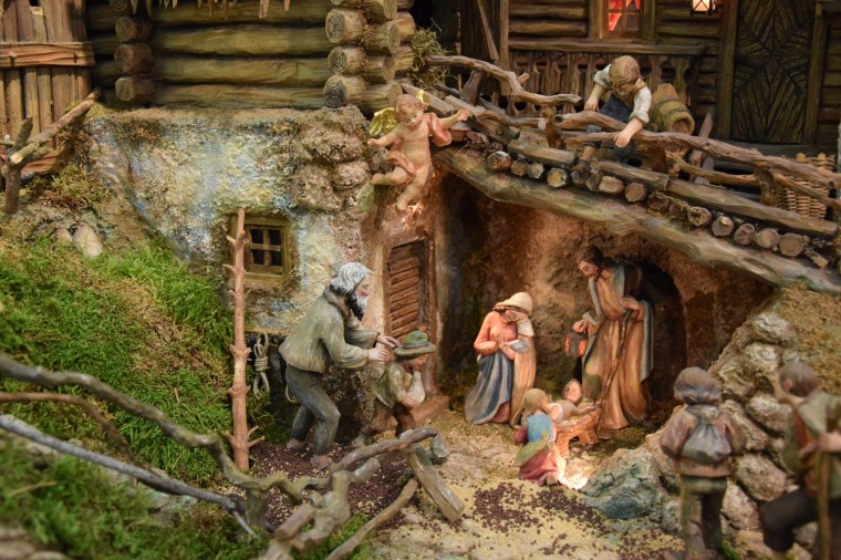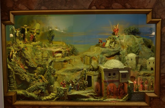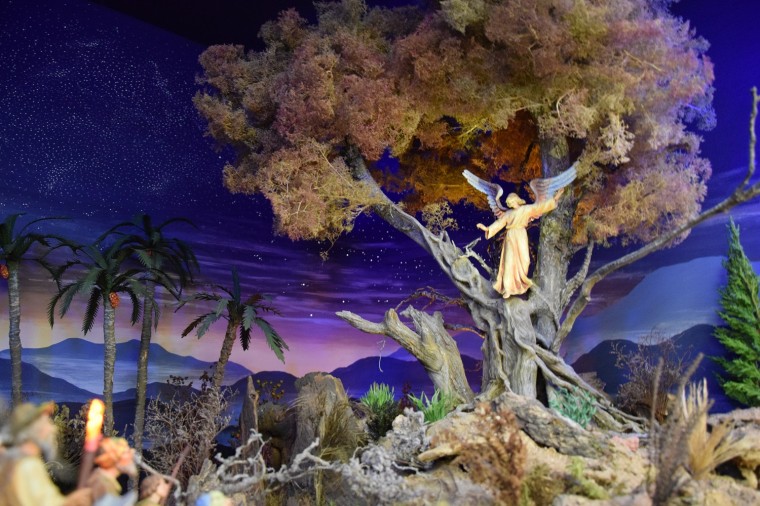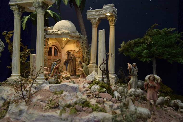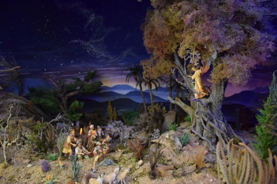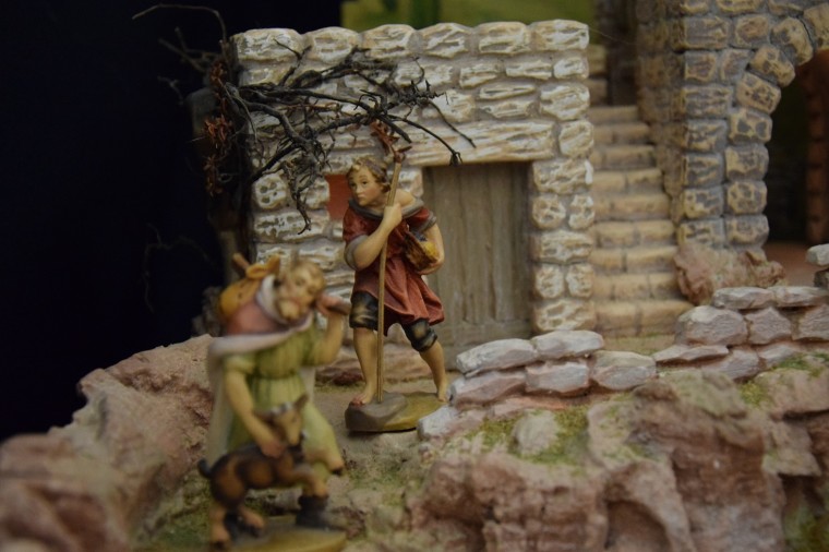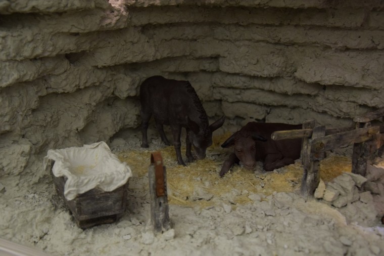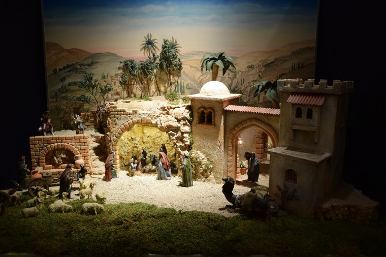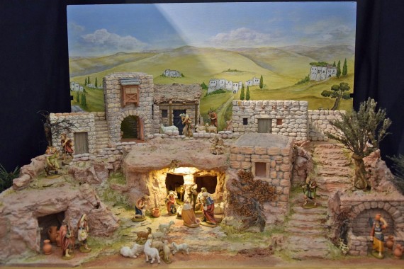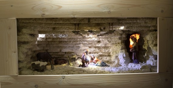 Die Landschaft der Krippe stellt es so dar, wie es oft beschrieben wird und zur Zeit der Geburt von Jesus ausgesehen haben soll: Die Häuser auf den Hügeln und die Geburt unten in einer Höhle."