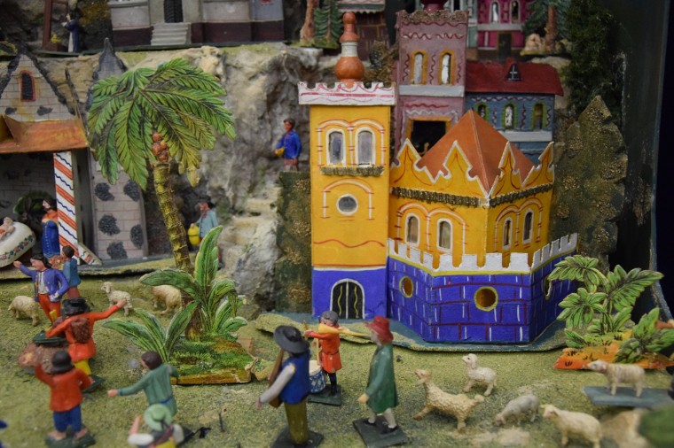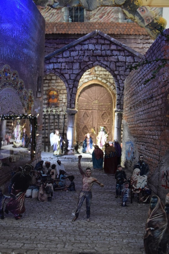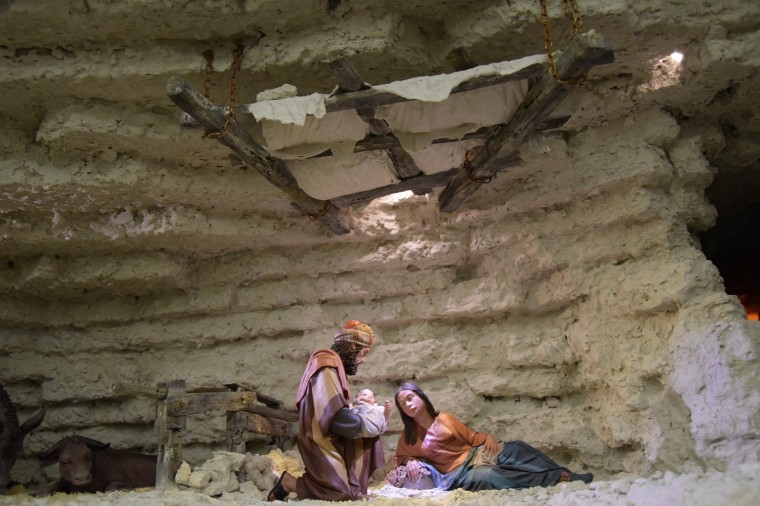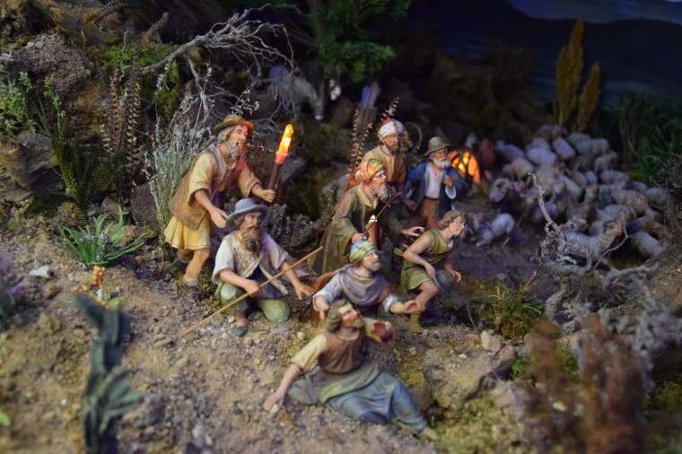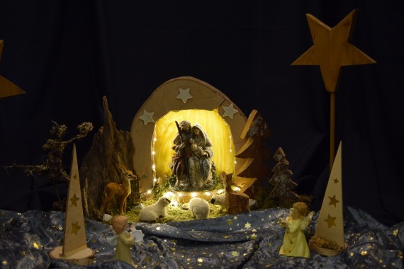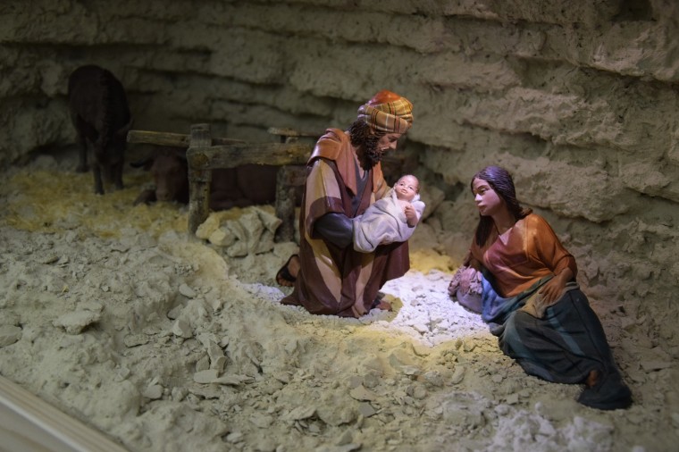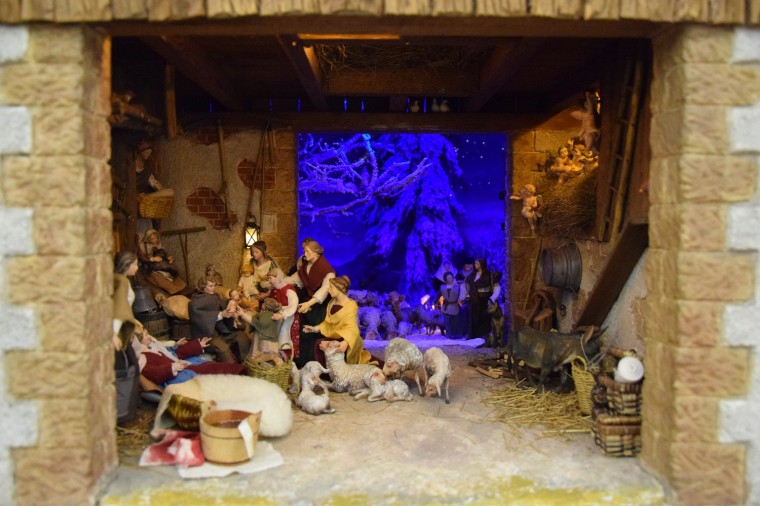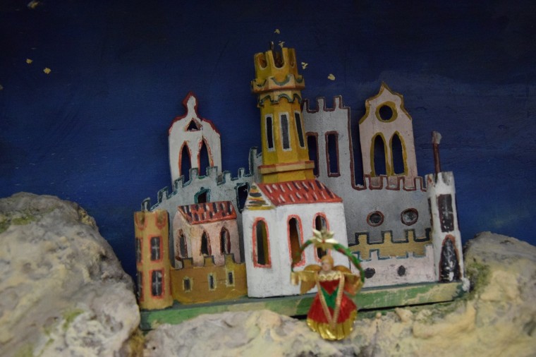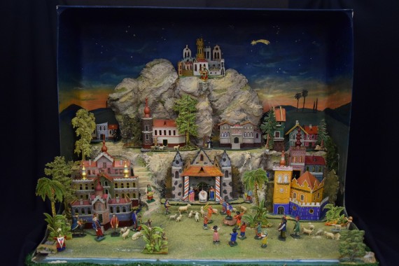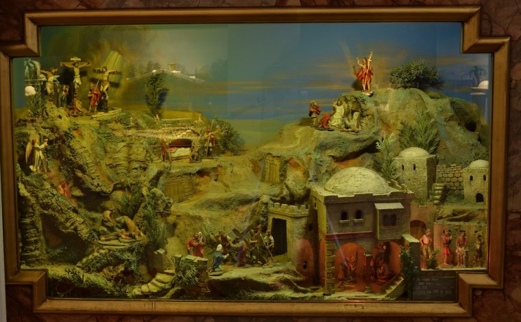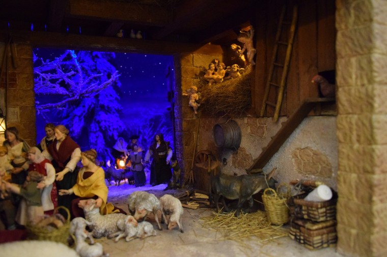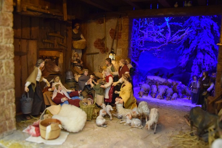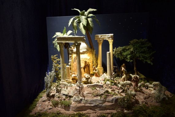 Die Landschaft der Krippe stellt es so dar, wie es oft beschrieben wird und zur Zeit der Geburt von Jesus ausgesehen haben soll: Die Häuser auf den Hügeln und die Geburt unten in einer Höhle."