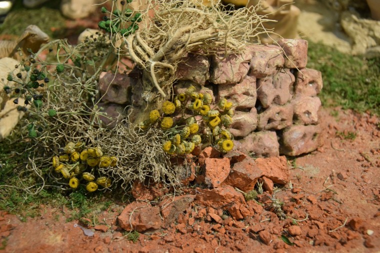 Ein besonderes Augenmerk muss bei dieser Krippe auf die feinen Gestaltungsdetails gerichtet werden, die sich aus kleinen Schalen, Schüsseln und Krügen aus Ton sowie feinen getrockneten Zweiglein zusammensetzen.