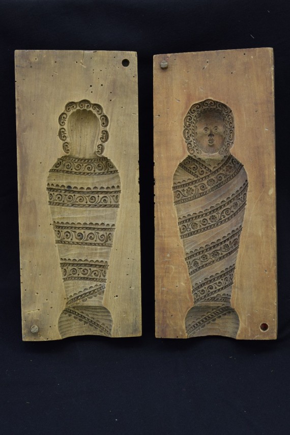 Seltener sind Köpfe aus Holz oder die Ausformung des gesamten Fatschenkindls in Wachs. Für letztere wird eine Model aus Holz verwendet (siehe Foto: Model für ein ganzes Fatschenkindlwohl aus dem frühen 19. Jahrhundert). Sozusagen in einer Negativform wird die spätere Figur mit Stichen in das Holz eingearbeitet. Je präziser die Arbeit, desto feiner wird schlussendlich die ausgemodelte Form. Das Fatschenkindl wird auf feinen Stoffen gebettet und befindet sich häufig unter Glas.